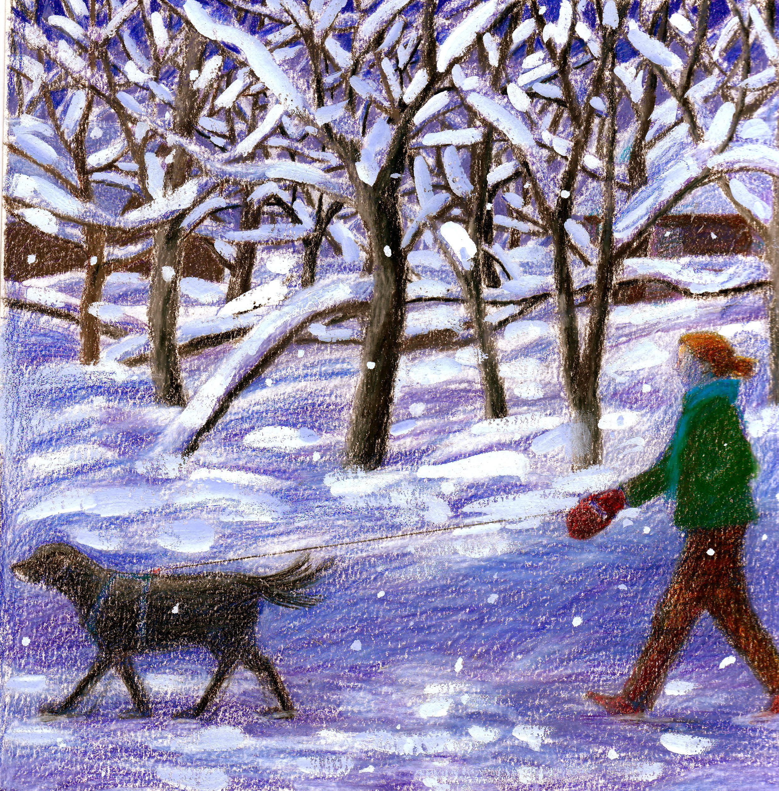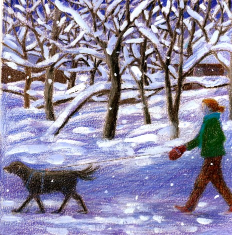 I love your painting (pastel?) of you walking your dog in the snow. The landscape was indeed magical.