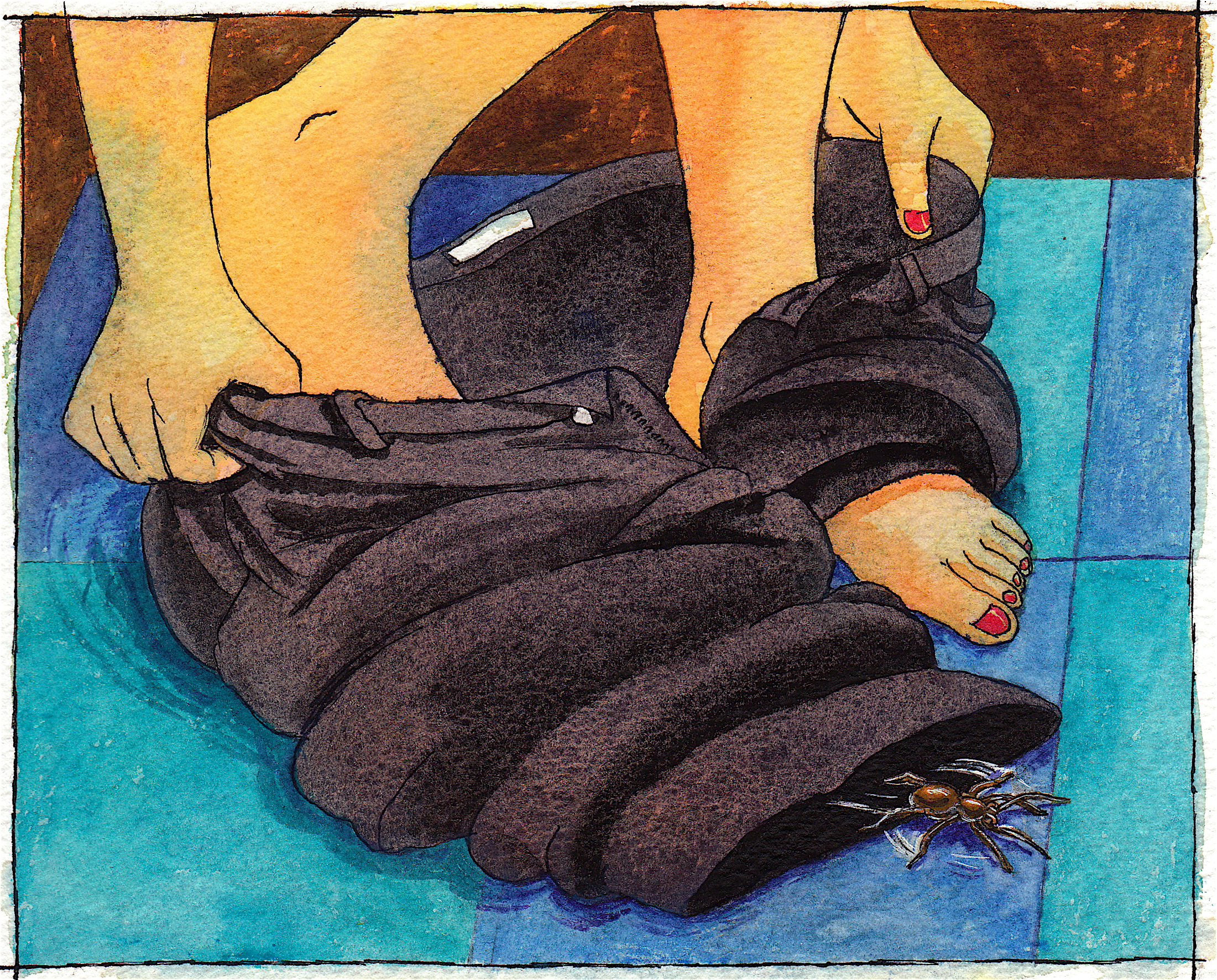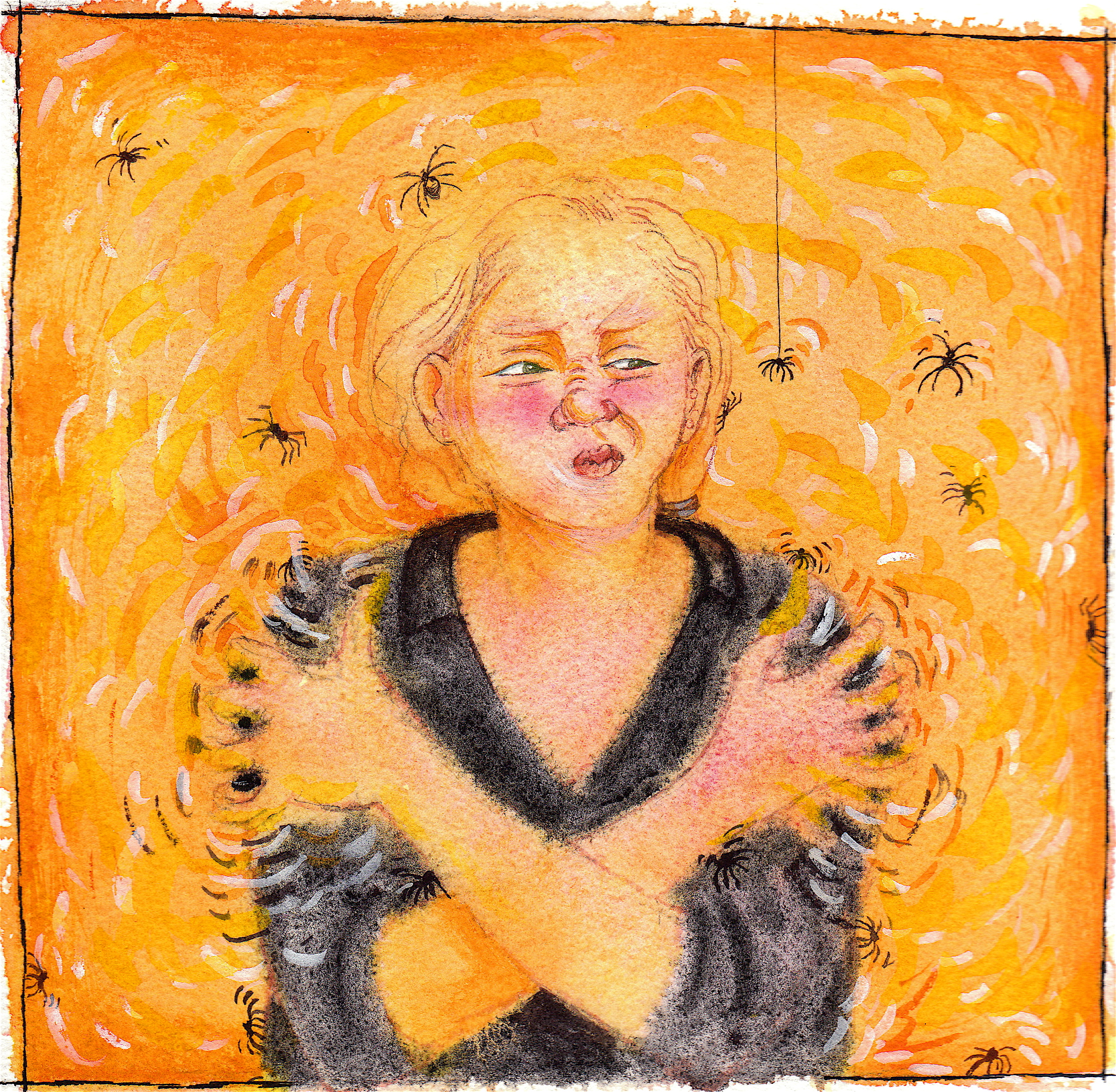 “Then I opened up my shirt and there was a sac of spider eggs. One of those filmy webby clusters. My black clothes must have seemed like a nice warm place in the sunlight.”