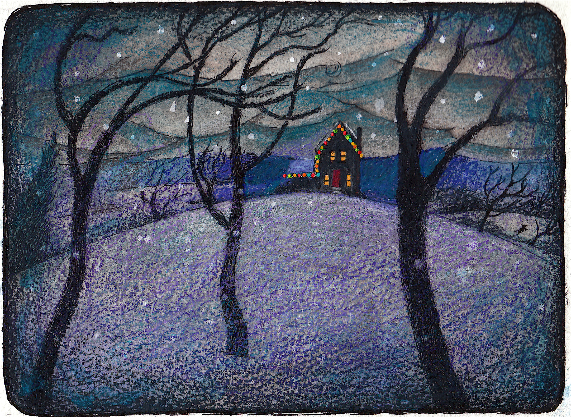 Love the picture! Looks like the piles of snow are in the sky. Thank goodness for those winky lights on the house!