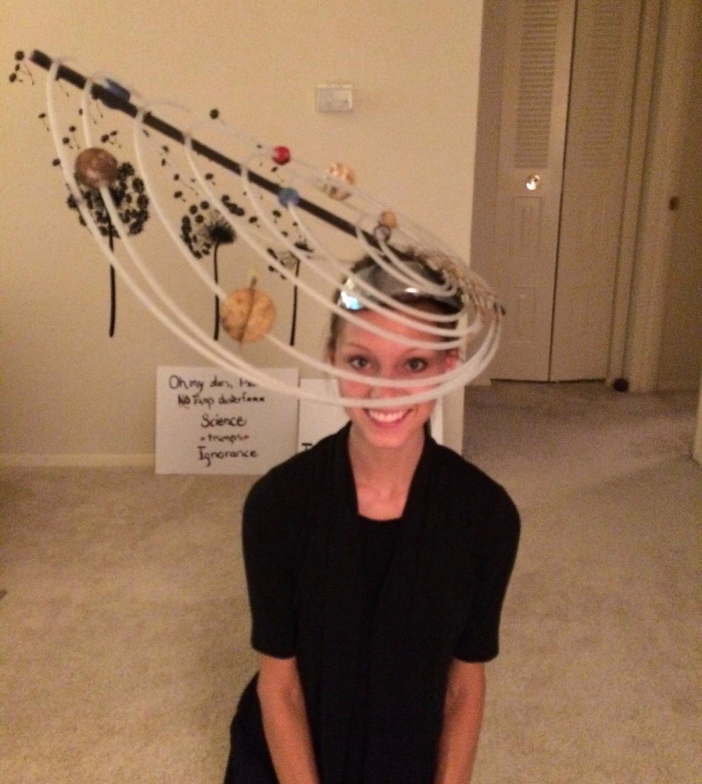 I’m planning the hat I’m going to make and wear at the March for Science in Washington, D.C., on April 22. My friend Kate, a costume designer for theater, is making a solar system hat that lights up. It will probably be amazing. I saw a picture of a boy, on the internet, who had also made a solar system hat. His was pretty spectacular, too: