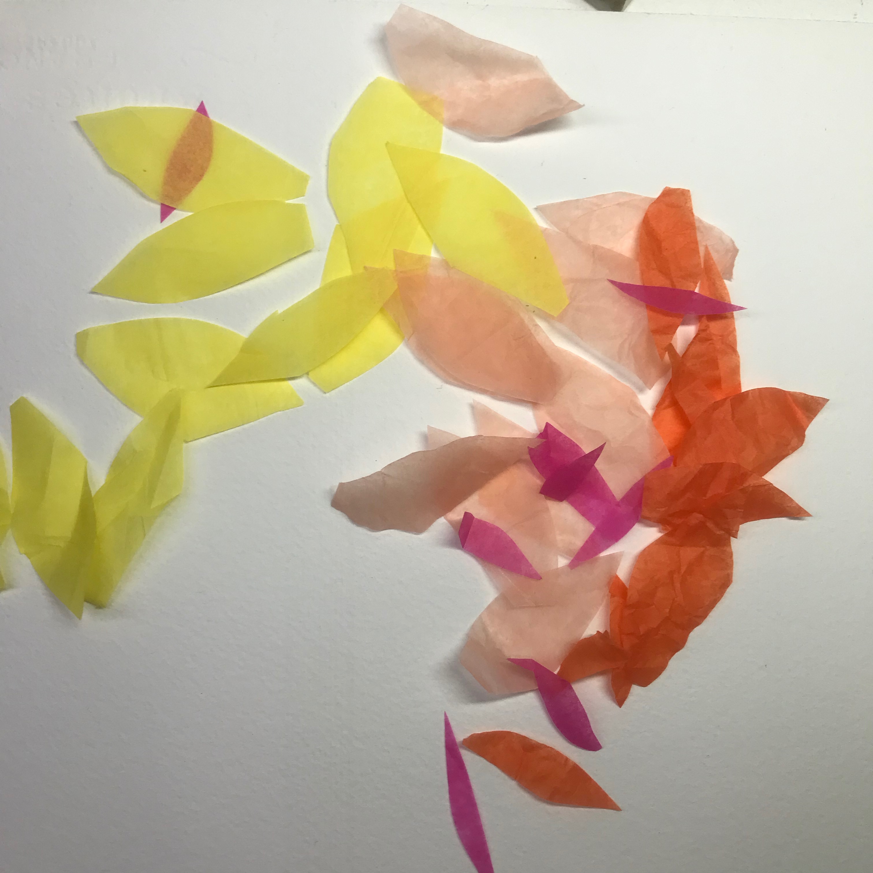 A grownup might also be helpful in making this little craft, which I find to be almost as cheery as a bonfire.It’s not hard at all, except for waiting for glue and paint to dry between steps. All you need is a small glass or votive holder, some tissue scraps, matte medium/decoupage stuff/or glue, glue, a little bit of acrylic paint, sand, pebbles, twigs and a votive candle, real or battery-operated. Here’s how:You will need a small glass candleholder, or just a small glass. Mine is just a small glass, so I used a battery-operated votive candle. I thought a real votive might make the glass explode, which would not be good. Cut up some pieces of red, orange,yellow, maybe even pink tissue paper into shapes like this. Flame shapes. Put them on your glass/votive holder. I brushed matte medium onto my glass, then more matte medium on top of the tissue. Matte medium is available at craft or art supply stores. I think you could also use decoupage stuff, maybe even clear all-purpose glue. Now find an old CD or DVD. MAKE SURE THAT NO ONE LIKES IT OR WANTS IT!!!!!! Because you are going to: paint it brown or gray. While it’s drying, collect some little stones. I found mine in our driveway, which is gravel. But little stones are practically anywhere. It’s important to make sure that your votive will fit inside your circle of stones. My first batch, left, was too big, so I had to start over. Once you have the right size, glue them to the outside edge of your painted CD. After the glue dries,