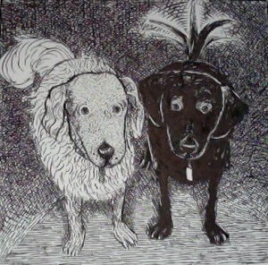 Dogs are pretty easy to have a remarkable kinship with. Our current dog, Lucky, insists that we take long vigorous hikes in the woods, in all kinds of weather (“Coach Lucky”), where he occasionally takes pauses that make us stop, too, and look at what is all around us. (“Guru Lucky”). Even though we grumble and don’t want to leave the house, we are glad afterwards that we did. When he goes off on a wild tear, running through the town and countryside eluding capture, he returns confident that we will forgive him almost right away, which we do, and that makes us feel good about ourselves. He doesn’t speak himself, but he seems to take such interest in what we say to him. And he is warm and furry. I like cats too, but we don’t have one at the moment.