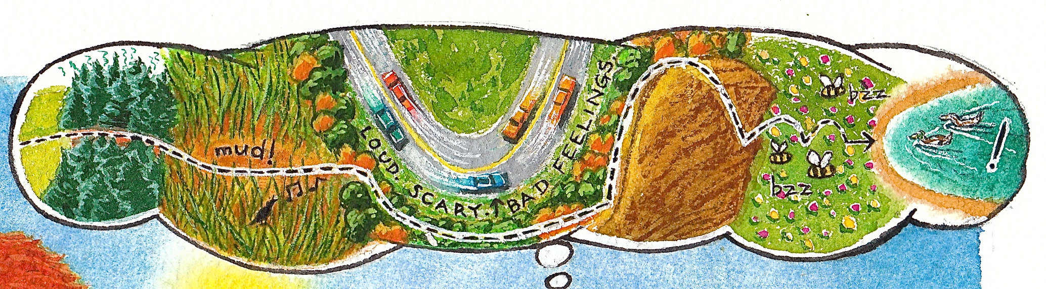 Here is the map the girl in Pictures from Our Vacation imagined of her special trip to a faraway place:Here is a map I imagined of how a dog might plan his trip from one place to another: