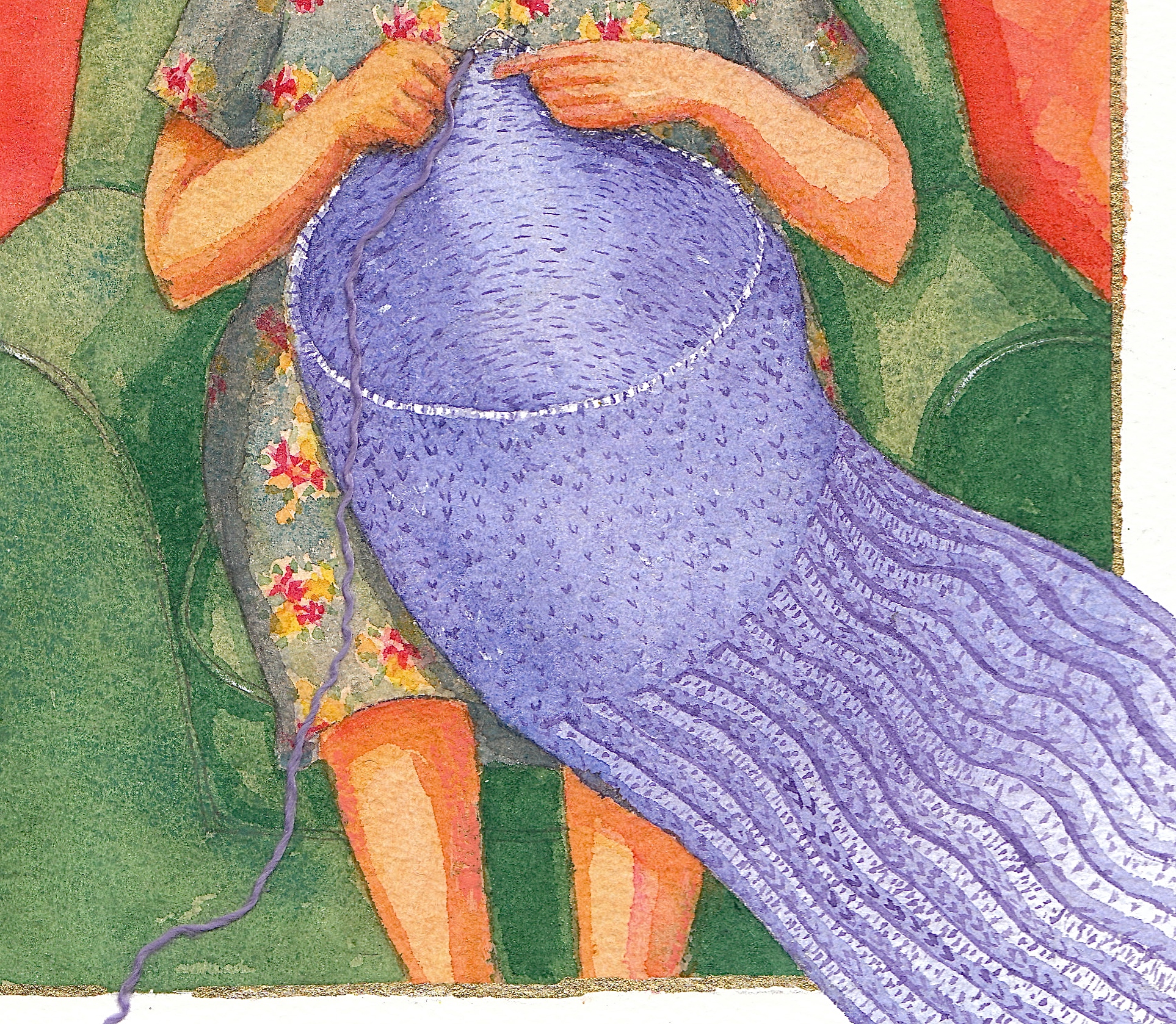 “String!” my mother said. “and she was a large woman for awhile. She lost weight later. She had one of those circular needles. She just kept knitting around and around. She knitted it for herself. She wore it a lot.